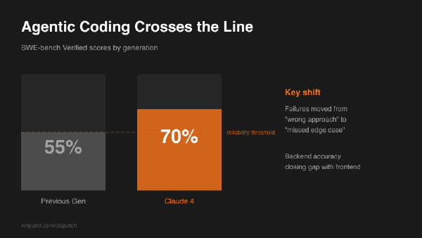 Claude 4 Benchmarks Signal a New Era for Agentic Coding1 April 2026·1 minClaude 4 pushes SWE-bench past 70% — agentic coding crosses the reliability threshold for solo builders.