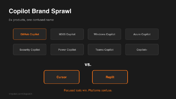 Microsoft's Copilot Brand Chaos Shows Product Strategy Drift5 April 2026·1 min8+ products named Copilot — Microsoft’s brand sprawl shows why focused tools win over platforms.